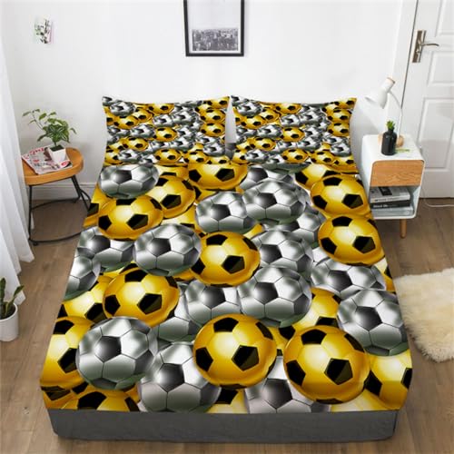 Drap Housse 90x190 cm Football, 3D Football Drap-Housse 90x1...