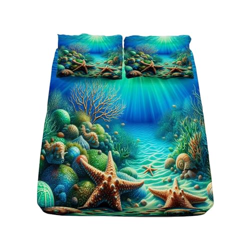 Drap Microfibre Corail Étoile de Mer Housse Matelas Respiran...