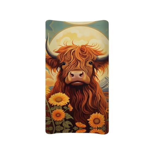 BYCHECAR Highland Cattle Sunflower Housse de matelas à lange...