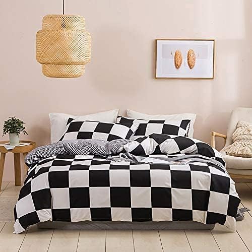 Parure de lit carreaux noir- blanc, housse couette géométriq...