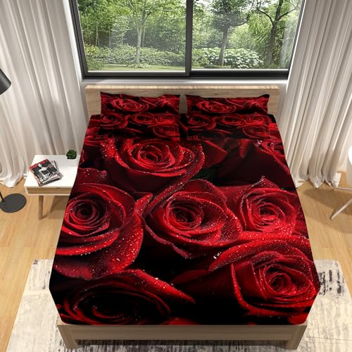 Drap Housse 140x190 cm Fleurs Roses Fleurs Rouges Drap de li...