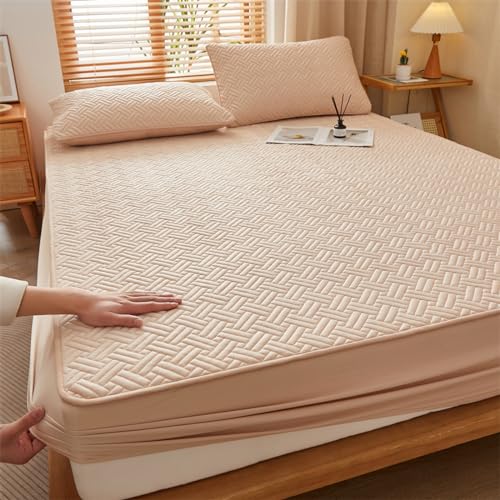 JHCHMX Satin-housse respirante taupe, poche profonde 35 cm