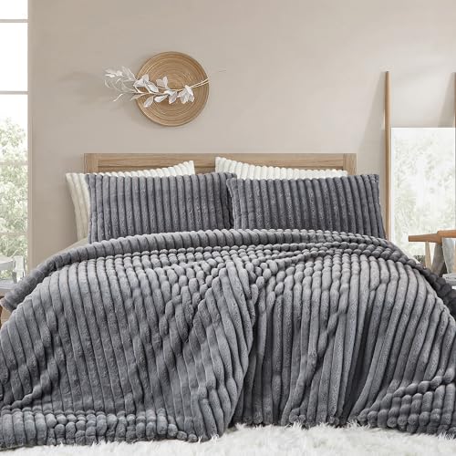 Stripe Fausse Fourrure Housse de Couette Hiver Velours Réver...