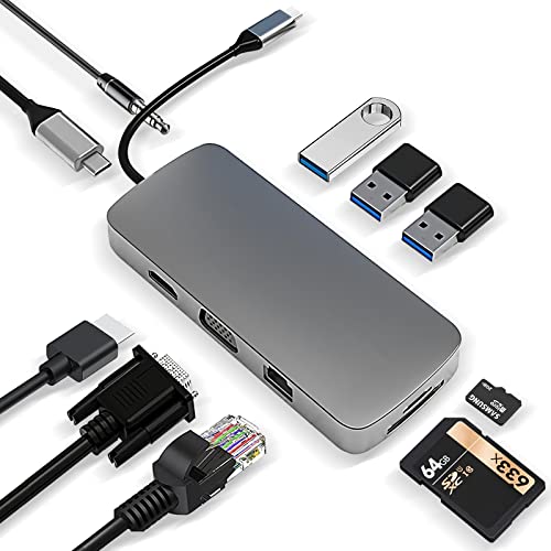 USB Hub 10 en 1, Adaptateur USB C HDMI 4K/VGA/100W PD