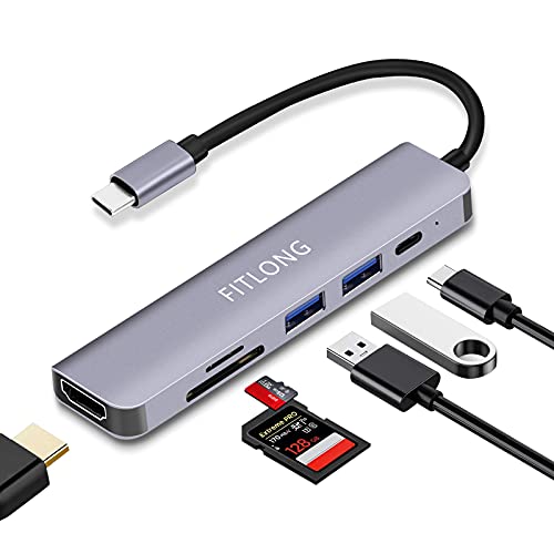 FitLong Hub USB C 6-en-1 MacBook Air/Pro, HDMI 4K, PD 100W,...