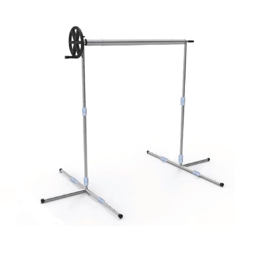 Enrouleur en aluminium et acier avec pieds en forme d''arc.