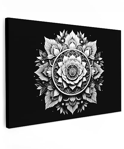 Impression sur toile murale moderne mandala noir blanc fleur...