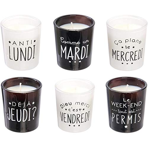 BO5195 Bougies parfumées vanille Coffret 6 Pots Noir et blan...