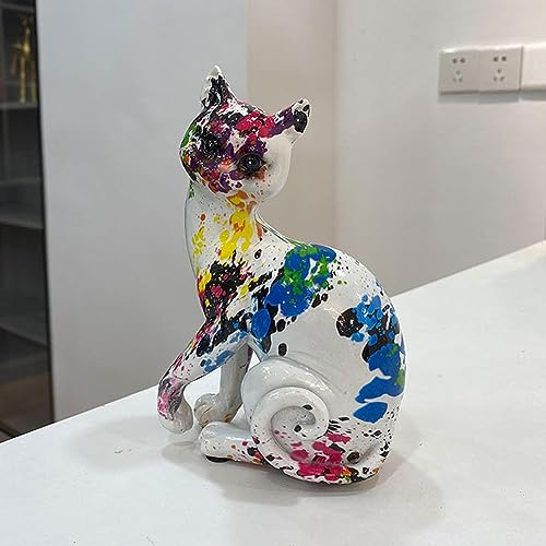 Graffiti Chat Statue Ornementale Chat Colorée Sculpture Anim...