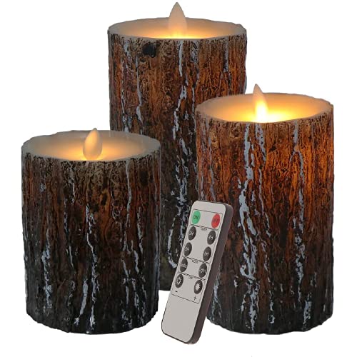 Pine Bark Effect Bouleau 3 bougies LED sans piles, télécomma...