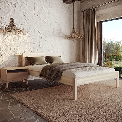 Lit Bois 160x200 Kaja Sommier à Lattes 2 Personnes Cadre Nat...