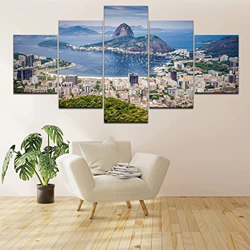 Tableau Multi Panneau 5 Parties Porte Vue Sur La Ville (L/Av...