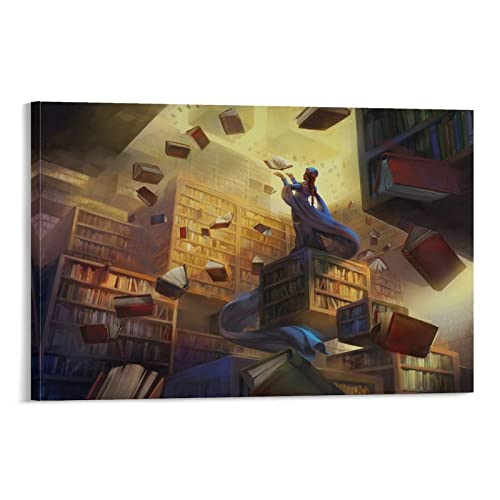 Impression d''art de bibliothèque sur toile encadrée, livres...