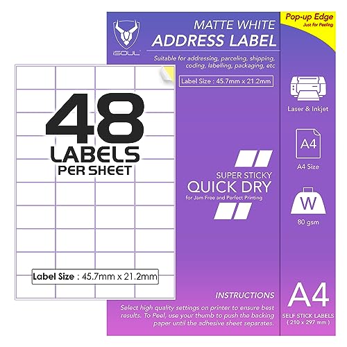 48 étiquettes par feuille A4, 50 feuilles de papier autocoll...