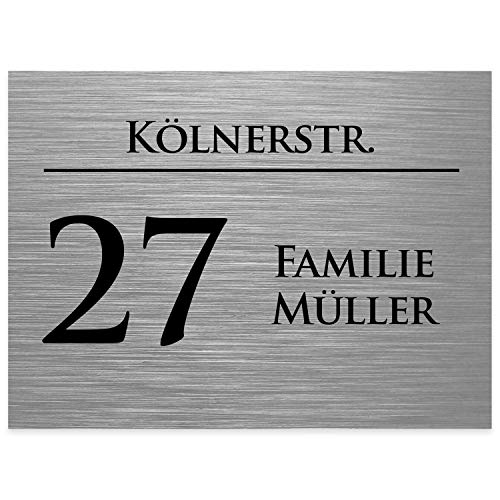 Plaque de maison avec numéro gravé, nom de rue et nom en arg...