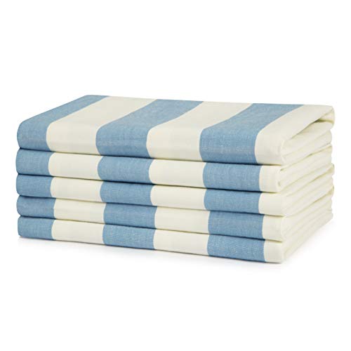 Zollner Set de 5 torchons lin mélangé bleu blanc carreaux 50...