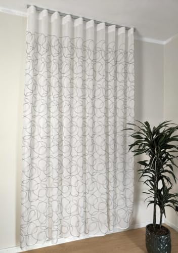 Cattani Vague Wave Rideaux - Largeur 150cm - Brodé Blanc/Gri...