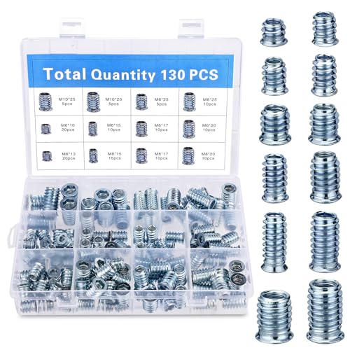 NVIYAM 130 Pcs Insert Fileté Bois Insert Fileté Metal M6/M8/...