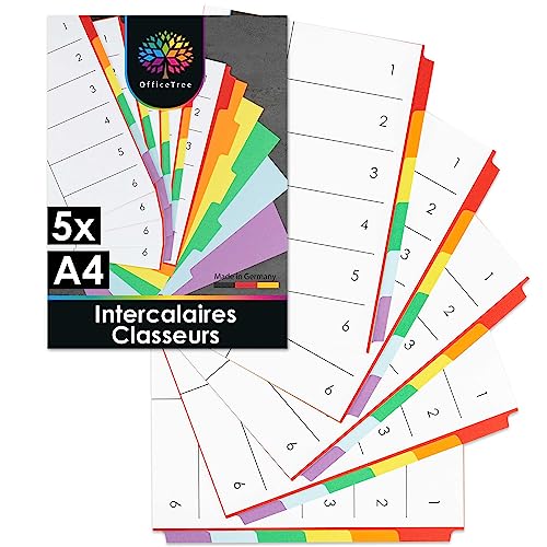 COULEURS - OfficeTree pack de 5 intercalaire classeur A4 ave...