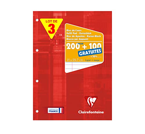 Blocs de Cours Encollés Perforés Clairefontaine 65818AMZC A4...