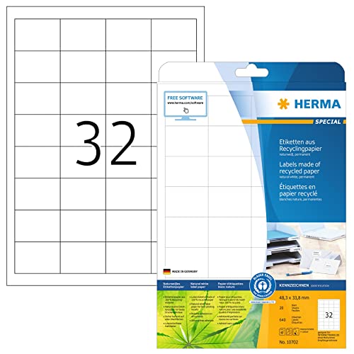HERMA 10702 Lot de 20 feuilles d'étiquettes recyclées A4, 64...