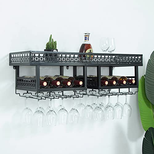 Casier à vin mural, porte-bouteilles et verres en métal, éta...