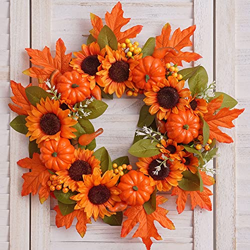 Couronne de citrouille en feuilles d''érable automnal, couro...