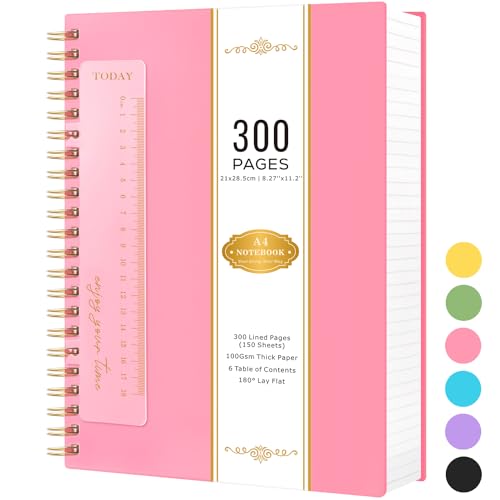 NIRMIRO Bloc-notes A4, 300 pages spirales, papier ligné 100...