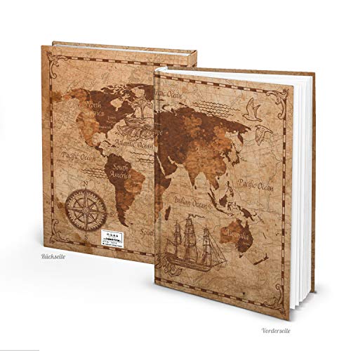 Beau grand carnet vintage marron avec motif carte du monde d...