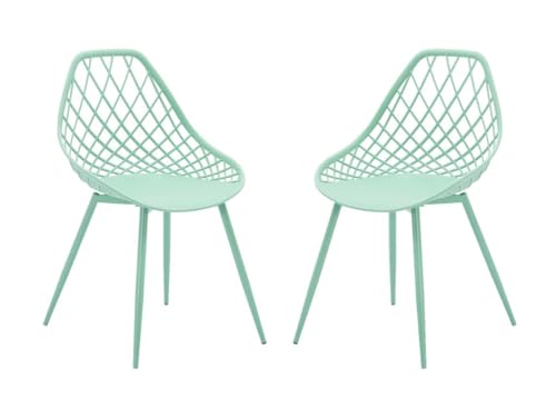 Lot de 2 chaises de jardin avec pieds en métal - Vert amande...