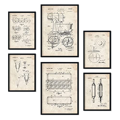 Ensemble de 6 Affiches Brevets Vintage Style Vintage