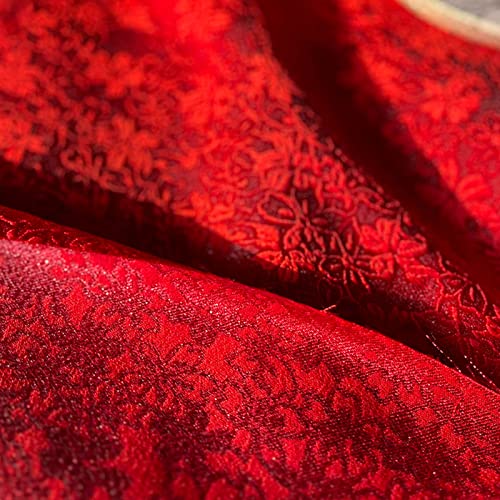 Satin brocart soie jacquard tissu or grand rouge en relief e...