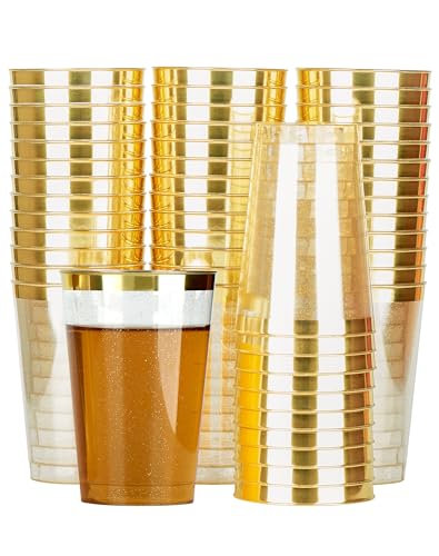SOSALUK 50 Pcs Gobelets Plastiques Dorés Réutilisables 330ml