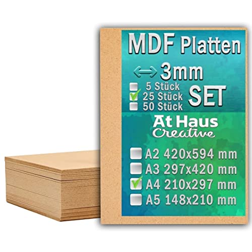 At Haus Lot 25 plaques bois MDF A4 297x210mm - 3mm - fin boi...