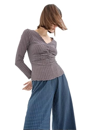 Haut drapé ajusté avec imprimé à carreaux roses Haut élastiq...