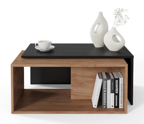 Fatiov Table Basse Marbre Salon Noir Industriel