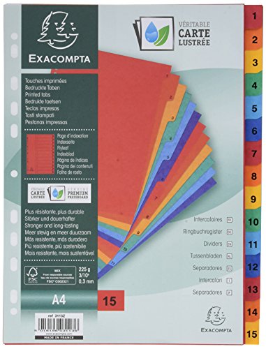 Exacompta Carte lustrée souple 225g/m2 FSC avec 15 Intercala...