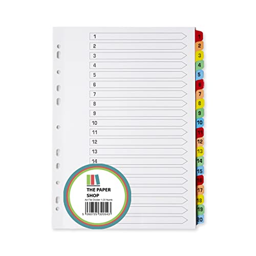 Intercalaires A4 20 numérotés 1-20 avec onglets colorés renf...