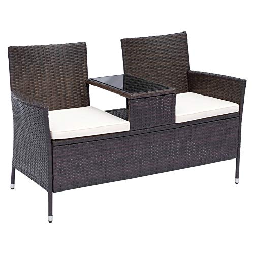 Shgaxin Résine Tressée Noir Banquette Jardin Exterieur 120cm