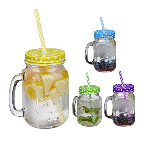 Relaxdays Jarres avec Paille et Couvercle, en Lot de 4, Volu...