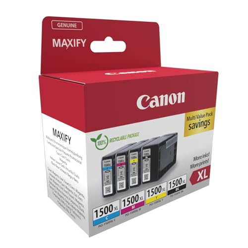 PGI-1500 XL C Pack de 4 Cartouches (Noir, Cyan, Magenta, Jau...