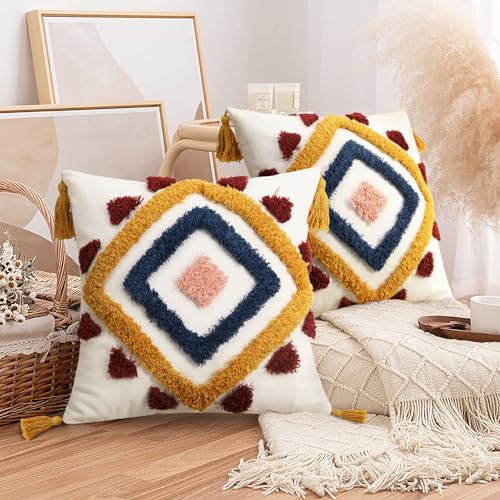 Merrycolor Lot de 2 Housse Coussin 45x45cm Bohème Taie Oreil...