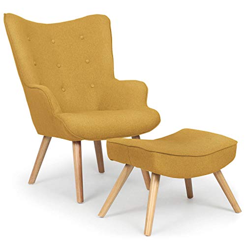 Menzzo Fauteuil Détente scandinave plus pouf Lylou Tissu Jau...