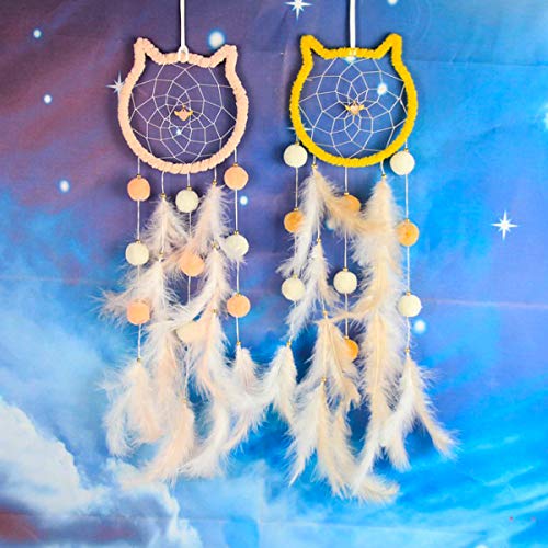 Capteur de Rêves Plumes LED Dreamcatcher Grand Jaune Rose