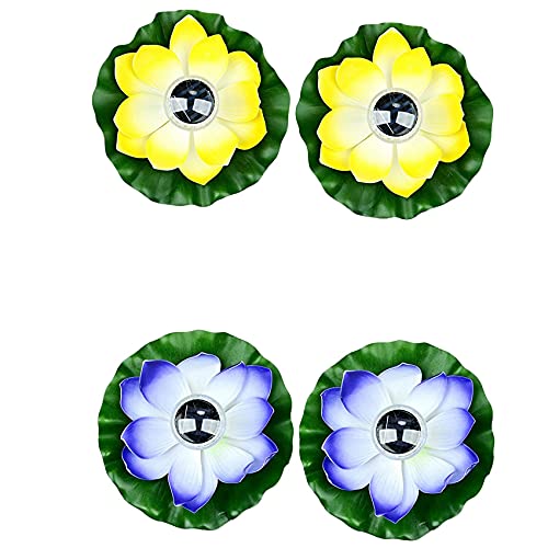 Lanternes solaires lot de 4 flottantes Lotus jaune clair et...