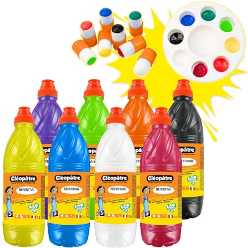 CLEOPATRE - 8 pinceaux pochoirs, palette + peintures primair...