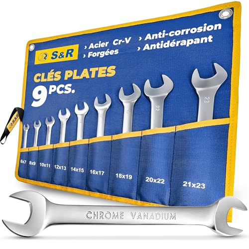 S&R Jeu de 9 Clés Plates 6-23 mm. Clefs Plates à Fourche Dou...