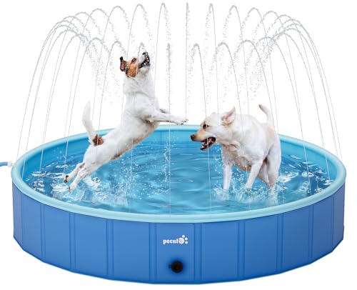 Piscine et Tapis Jet d'Eau pour Chien, Baignoire Pliable, Je...