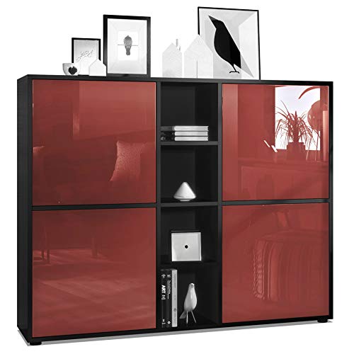Vladon Highboard Cuba V3 Noir Mat/Bordeaux Haute Brillance 1...