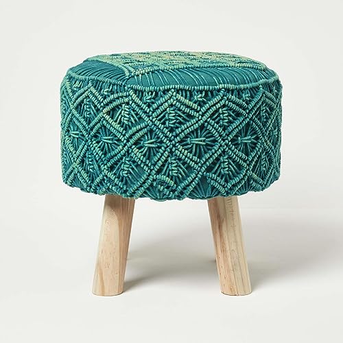 Homescapes Bohème Tabouret Macramé Pouf Tricot Bleu Turquois...